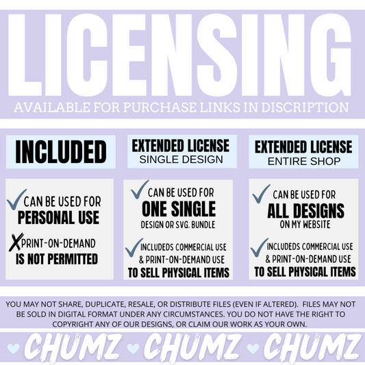 CHUMZ EXTENDED COMMERCIAL USE LICENSE FOR SINGLE DESIGN • This is an Extended...